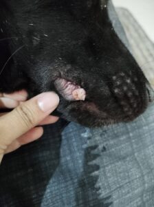 On January 31, 2024, the wart was 8mm in diameter. A month later, on February 28, it had grown to 13mm in diameter. Kaalu had no issues with it, but the other street dog, Jumi, was trying to nibble on it. Jumi is such an idiot.