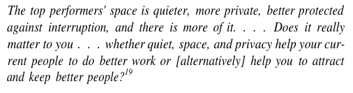 The top performers' space is quieter, more prive