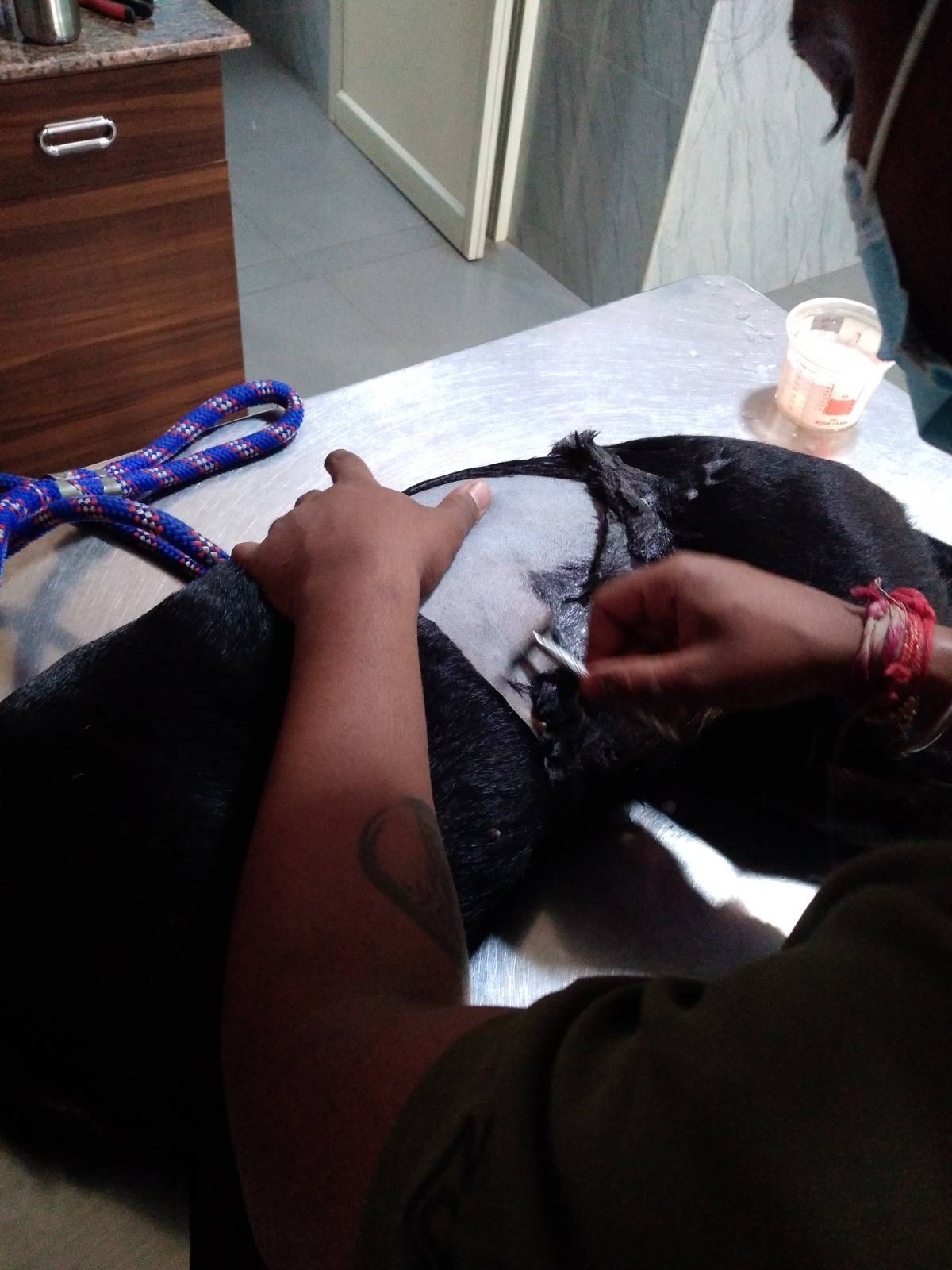 When Kalu finally woke up she was in shock and try to jump out of the table. She was terribly confused as one should be. I tried to hold her and calm her down. Another mistake. Because in the stage of confusion, she could have easily bitten me or someone else. Fortunately, it didn’t happen, and the nurse put a cone on her. We brought her back home in an auto. She was in discomfort but not in pain.